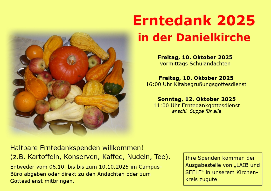 Erntedank 2025 am 10. und 12. Oktober 2025